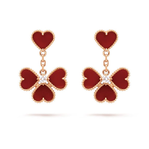 スウィート アルハンブラ エフイヤージュ ピアス、ローズ ゴールド、カーネリアン、ラウンドカット ダイヤモンド カラー:DEF、クラリティ:IF~VVS