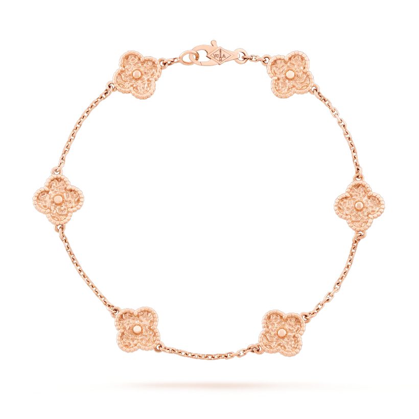 スウィート アルハンブラ ブレスレット、6モチーフ、ローズ ゴールド。