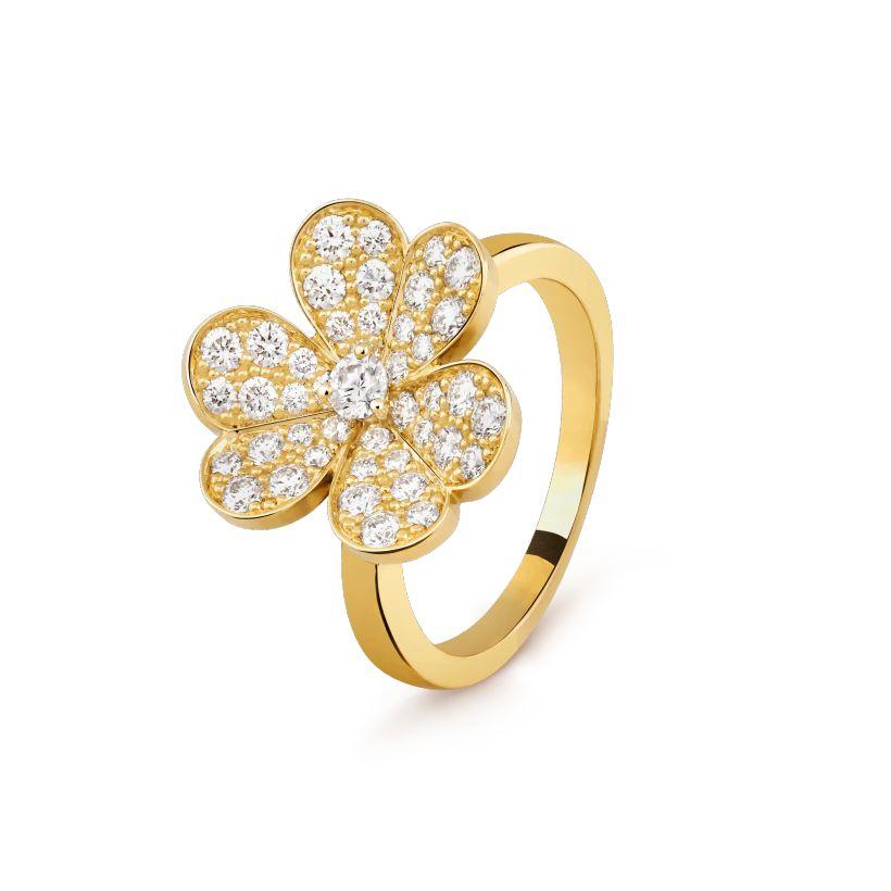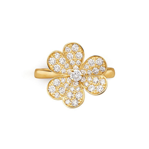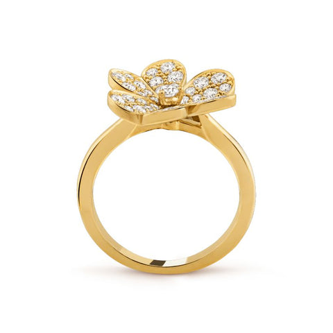 フリヴォル リング、1フラワー、スモールモデル、イエローゴールド、ラウンドカット ダイヤモンド、ダイヤモンドのクオリティ DEF IF~VVS