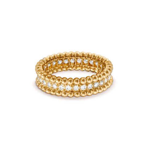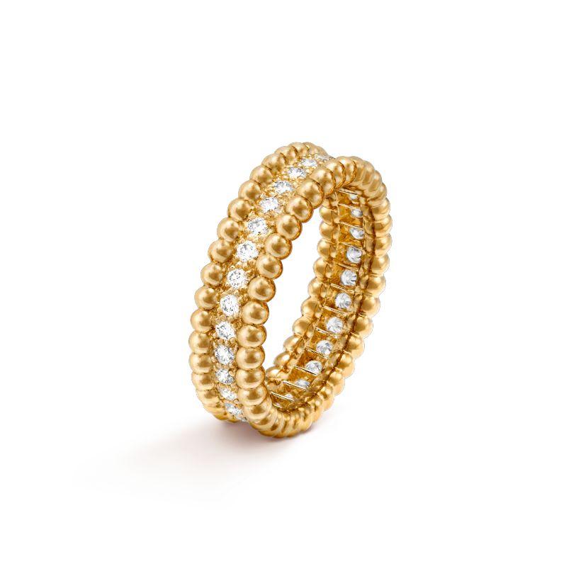 ペルレ ダイヤモンド リング 1連モデル、イエローゴールド、ラウンドカット ダイヤモンド。ダイヤモンドのクオリティ DEF IF~VVS