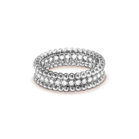 ペルレ ダイヤモンド リング 1連モデル、ホワイトゴールド、ラウンドカット ダイヤモンド。ダイヤモンドのクオリティ DEF IF~VVS