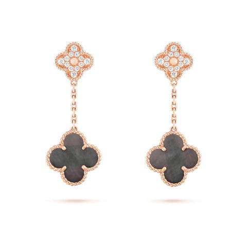 マジック アルハンブラ イヤリング、2モチーフ、ローズ ゴールド、グレーマザーオブパール、ラウンドカット ダイヤモンド、ダイヤモンドのクオリティ DEF IF~VVS