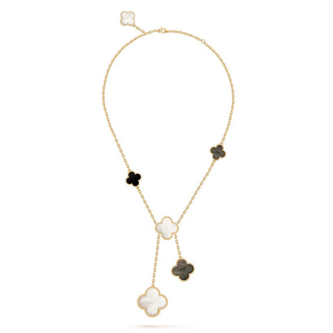 マジック アルハンブラ ネックレス、6モチーフ、イエローゴールド、ホワイト&グレー マザーオブパール、オニキス
