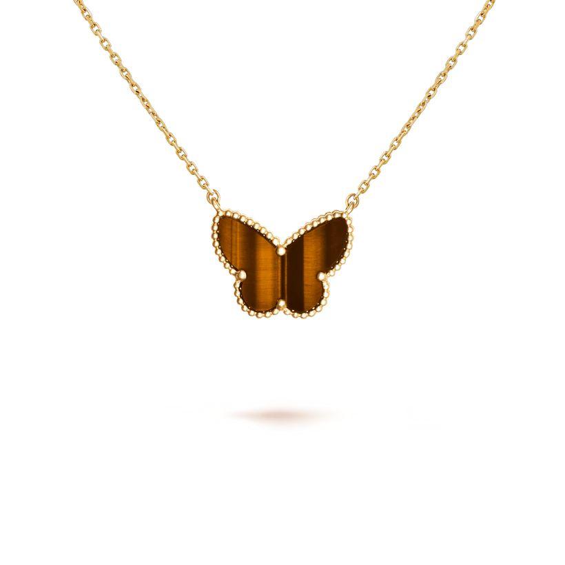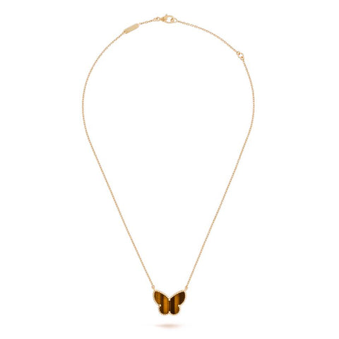 ラッキー アルハンブラ パピヨン ペンダント、イエローゴールド、タイガーズアイ