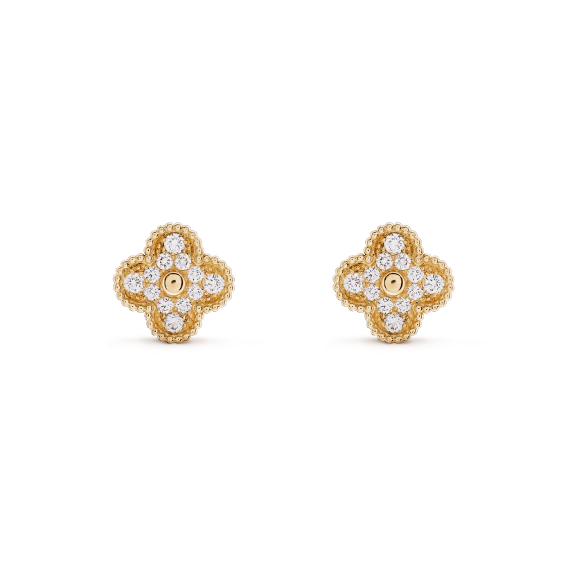 ヴィンテージ アルハンブラ イヤリング、イエローゴールド、ラウンドカット ダイヤモンド カラー:DEF、クラリティ:IF~VVS