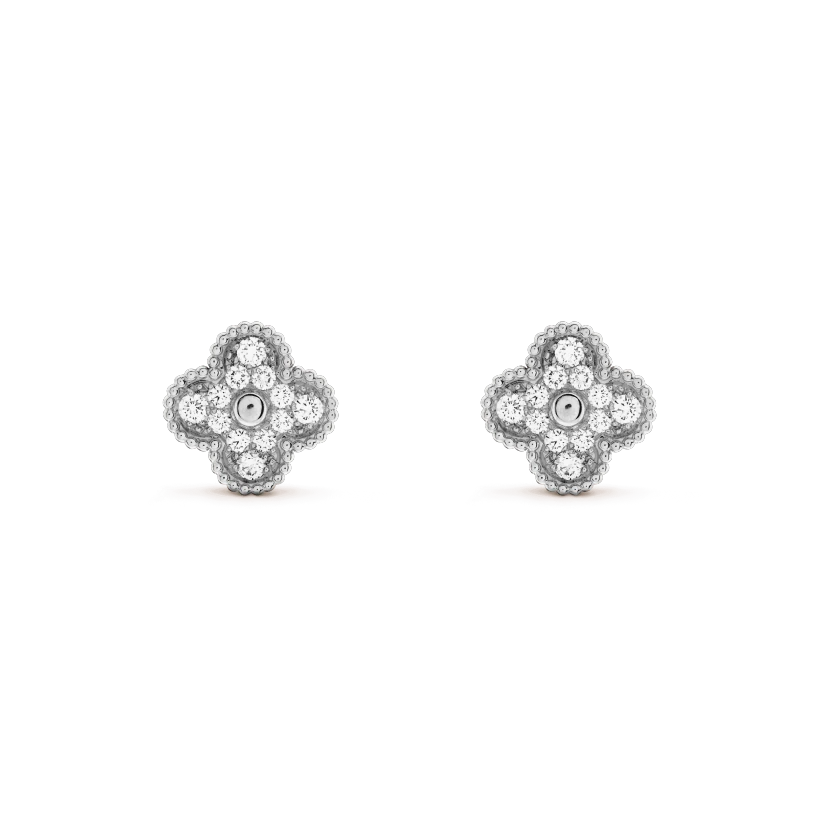 ヴィンテージ アルハンブラ イヤリング、ホワイトゴールド、ラウンドカット ダイヤモンド:カラーはDEFクラス、クラリティはIFからVVSクラスのクオリティ