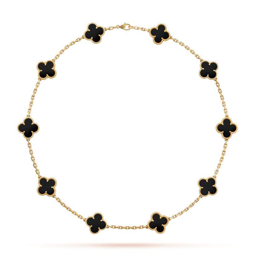 ヴィンテージ アルハンブラ ネックレス、10モチーフ、イエローゴールド、オニキス