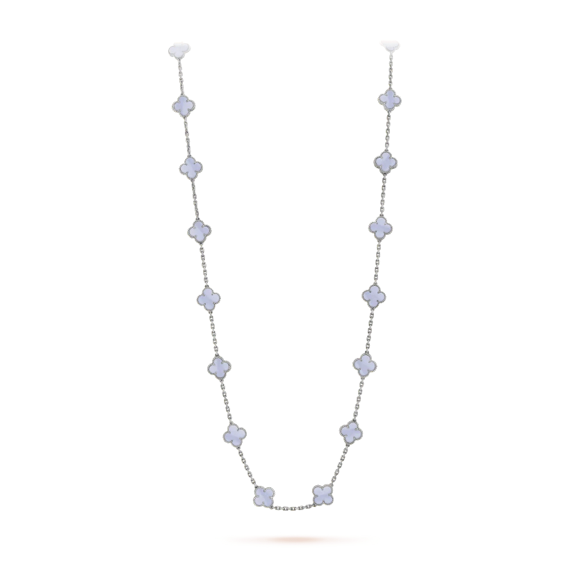 ヴィンテージ アルハンブラ ロングネックレス、20モチーフ、ホワイトゴールド、カルセドニー