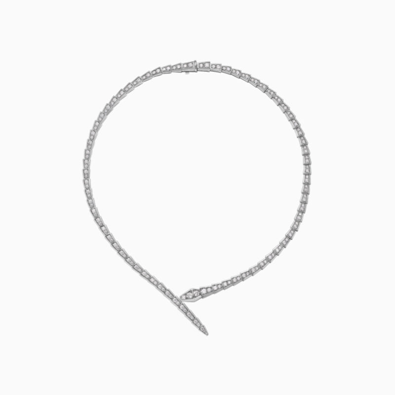 パヴェダイヤモンドをあしらった18 K ホワイトゴールド製セルペンティ ヴァイパー ネックレス。