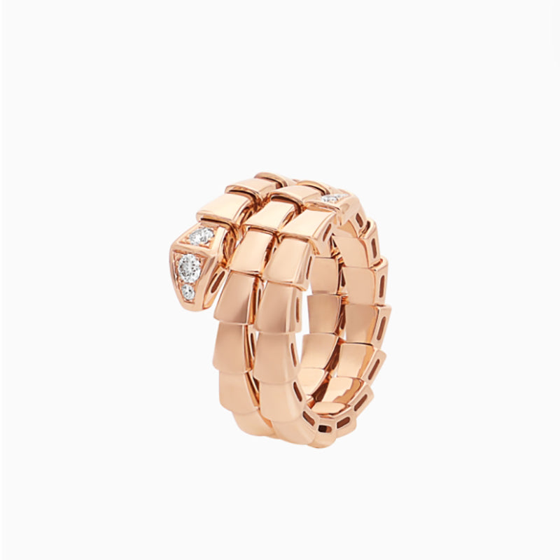 18 K ピンクゴールド製セルペンティ ヴァイパー ダブルコイルリング。デミパヴェダイヤモンドをあしらいました。