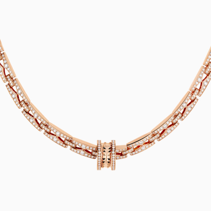 ビー・ゼロワン ロック チェーン ネックレス。パヴェダイヤモンドをあしらった18Kピンクゴールド製。