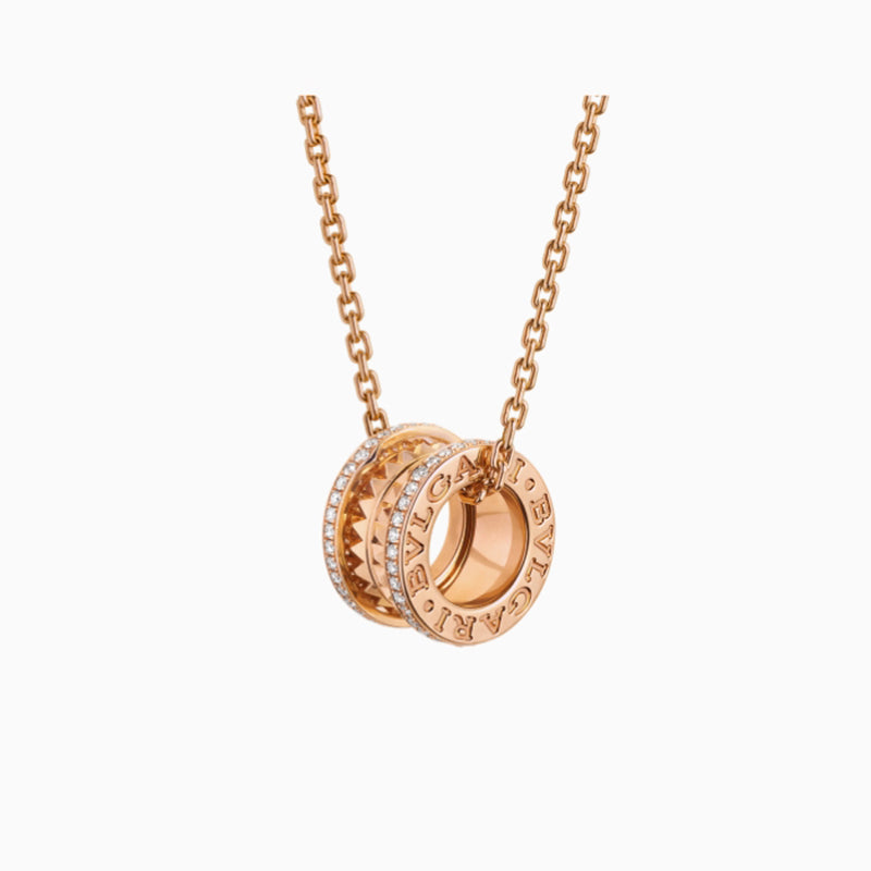 パヴェダイヤモンドを使用した18Kピンクゴールド製ビー・ゼロワン ロックペンダントネックレス。