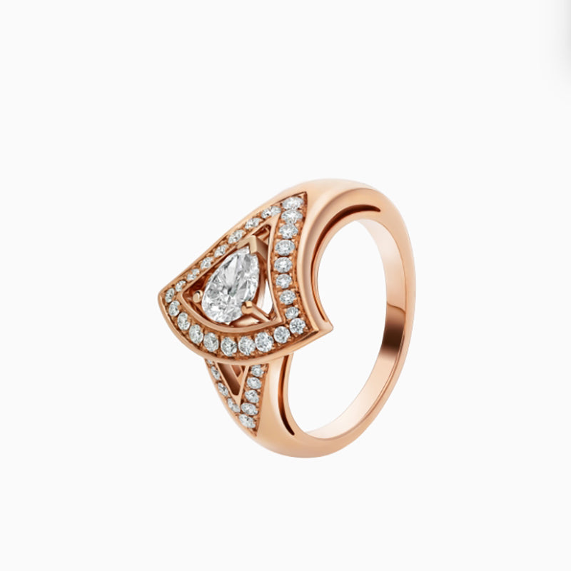 • ディーバドリームシリーズリングイタリアのエレガンスと魅力を体現し、ミステリアスで忘れられない気質を持つ女性のパワーを解放します。フェミニンな魅力に満ちた繊細なリングは、ローマのカラカラ浴場のモザイク装飾からインスピレーションを得た扇型のパターンで装飾されており、イタリアのエレガンスのエッセンスを取り入れて、本物保証と「永遠の都」ローマの関係を強調しています。歴史的起源。絶妙で軽い中空のデザインは、このシリーズの古典的な形状を再解釈し、絶妙なドロップ型のダイヤモンドで装飾されており、現実と現実の間の魅力を解釈しています。 DIVAS’DREAM シリーズ 18K ローズゴールドの中空リング。ペアシェイプ ダイヤモンドをセットし、パヴェ ダイヤモンドで装飾されています。