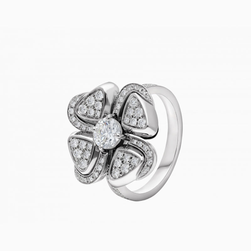 • 素晴らしき永遠の都市で花を咲かせるフィオレヴァーは、幸せと喜びの象徴として、いつもローマ人に大切にされてきた魅力的な四弁花からインスピレーションを得ています。イタリア語で花を意味するフィオーレとフォーエバーという2つの重要な言葉を組み合わせたフィオレヴァーは、印象的で情熱的なデザインによって、ローマ人の人生に対する愛を称えます。本物保証のプレシャスな花のアイコンは、4つの花弁を象ったピンクゴールドのオープンワークで中央のダイヤモンドを囲むことにより、永遠の輝きを放ちます。 フィオレヴァー リング。ダイヤモンドをあしらった18Kピンクゴールド製。フィオレヴァー リング。中央にダイヤモンドとパヴェダイヤモンドをあしらった18Kホワイトゴールド製。