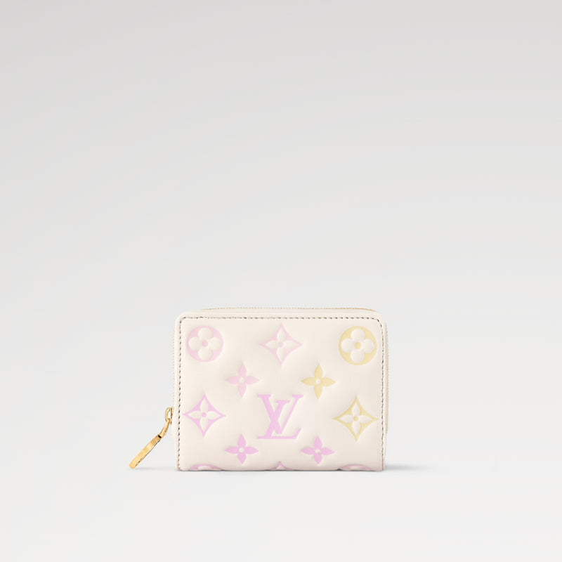 • 「フラワー・リング」コレクションの一部として登場した「ポルトフォイユ・ルー」。モノグラム・パターンをパステルカラーのエンボス加工で施した、パフ感溢れるラムレザーで仕上げました。ファスナー引き手には、サークル内にモノグラム・フラワーがあしらわれています。紙幣用コンパートメントとファスナー付きコインポケット、6つのカードスロットを備えた、小ぶりなスクエア型の財布です。