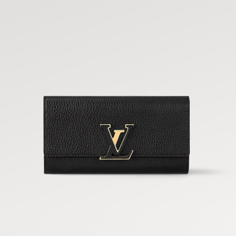 • しなやかなトリヨンレザーを使用し、レザーコーティングが施されたLVシグネチャーをあしらった、「ポルトフォイユ・カプシーヌ」。メゾンを象徴する「カプシーヌ」のラインから着想を得たエレガントな財布です。美しさと機能性を兼ね備えたデザインは、日常の必需品を収納するのにも十分な大きさです。