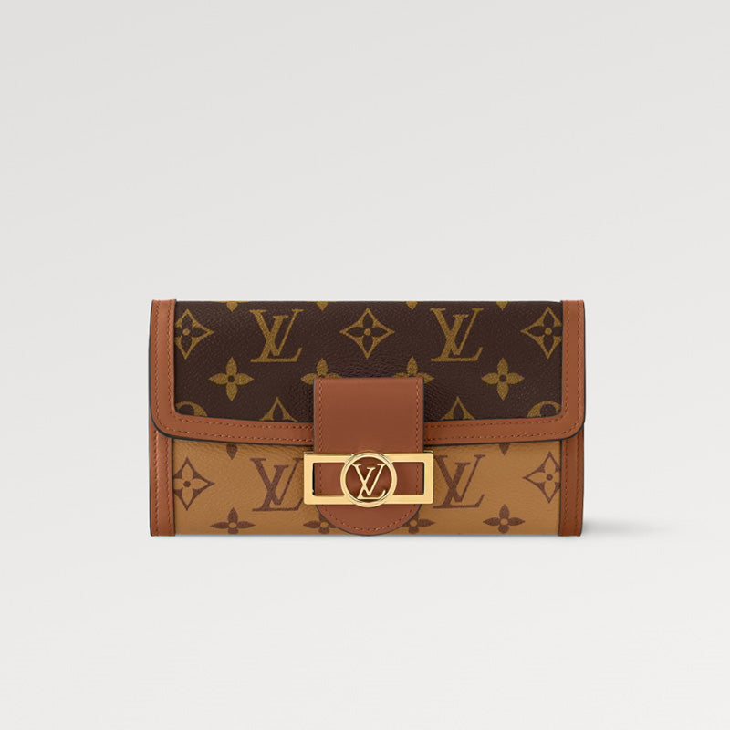 • 定番の財布「ポルトフォイユ・サラ」を「ドーフィーヌ」ラインを特徴付ける上品なシグネチャーを散りばめて再解釈した「ポルトフォイユ・サラ ドーフィーヌ」。モノグラム & モノグラム・リバース キャンバスを組み合わせ、カーフレザーのトリミングとヴィンテージ調のLV サークルのクラスプを施しました。モノグラム・リバース キャンバスであしらった12のカードスロットとファスナー付きコインポケットを備えた機能性が、デザインを引き立てます。