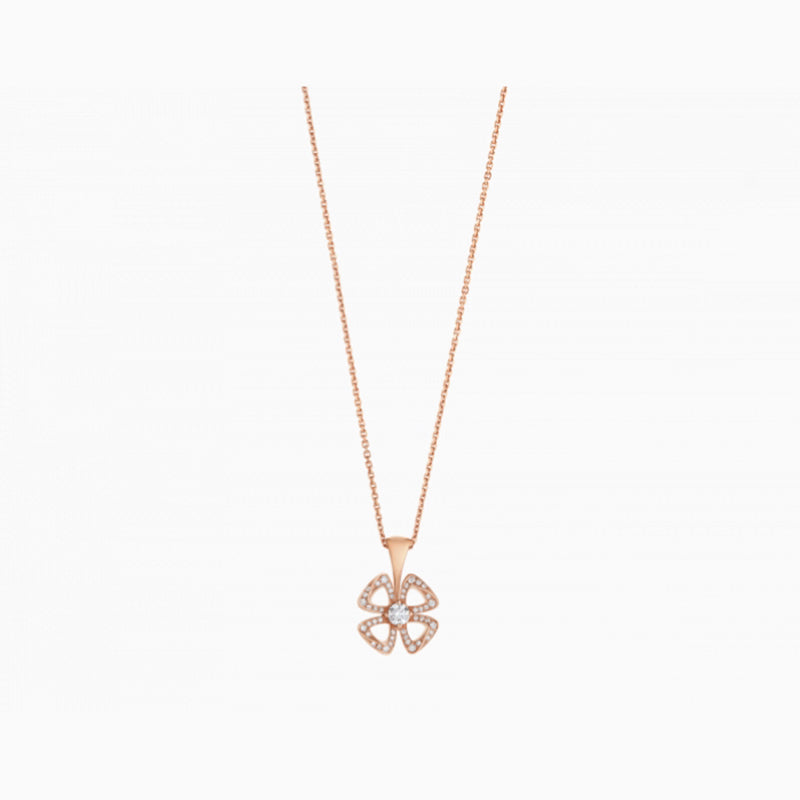 ブリリアントカット・ダイヤモンド(0.10ct)とパヴェダイヤモンド(0.06ct)をあしらった18Kピンクゴールドのフィオレヴァー ネックレス。